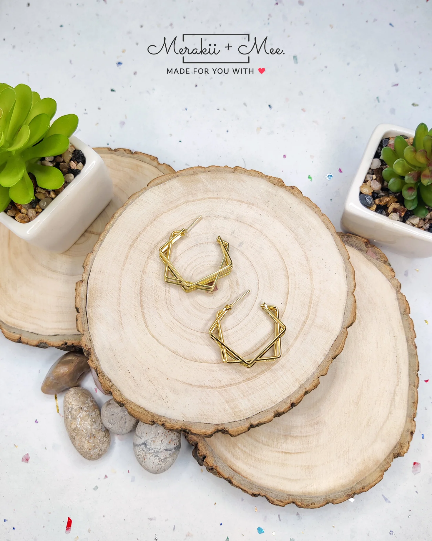 Beautiful, geometric earrings that make a statement. These earrings are made of high-quality copper, making them durable and lightweight. They are perfect for any occasion, whether it be casual or formal.